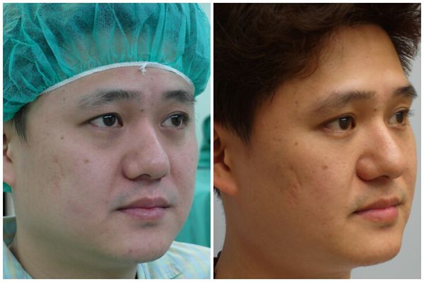 畢竟臉部講求的是均整平滑,所以這道紋路帶給當事人相當的困擾。若仔細觀察之,可發現該凹痕處有許多明顯的粗大毛孔,所以表示該處結締組織很緻密與較發達。相對於淚溝與蘋果肌處組織較鬆軟之狀態,在處理上難度稍高一些,所以在此處以自體脂肪注射來處理會較其他方式較為適當,結果也較佳。